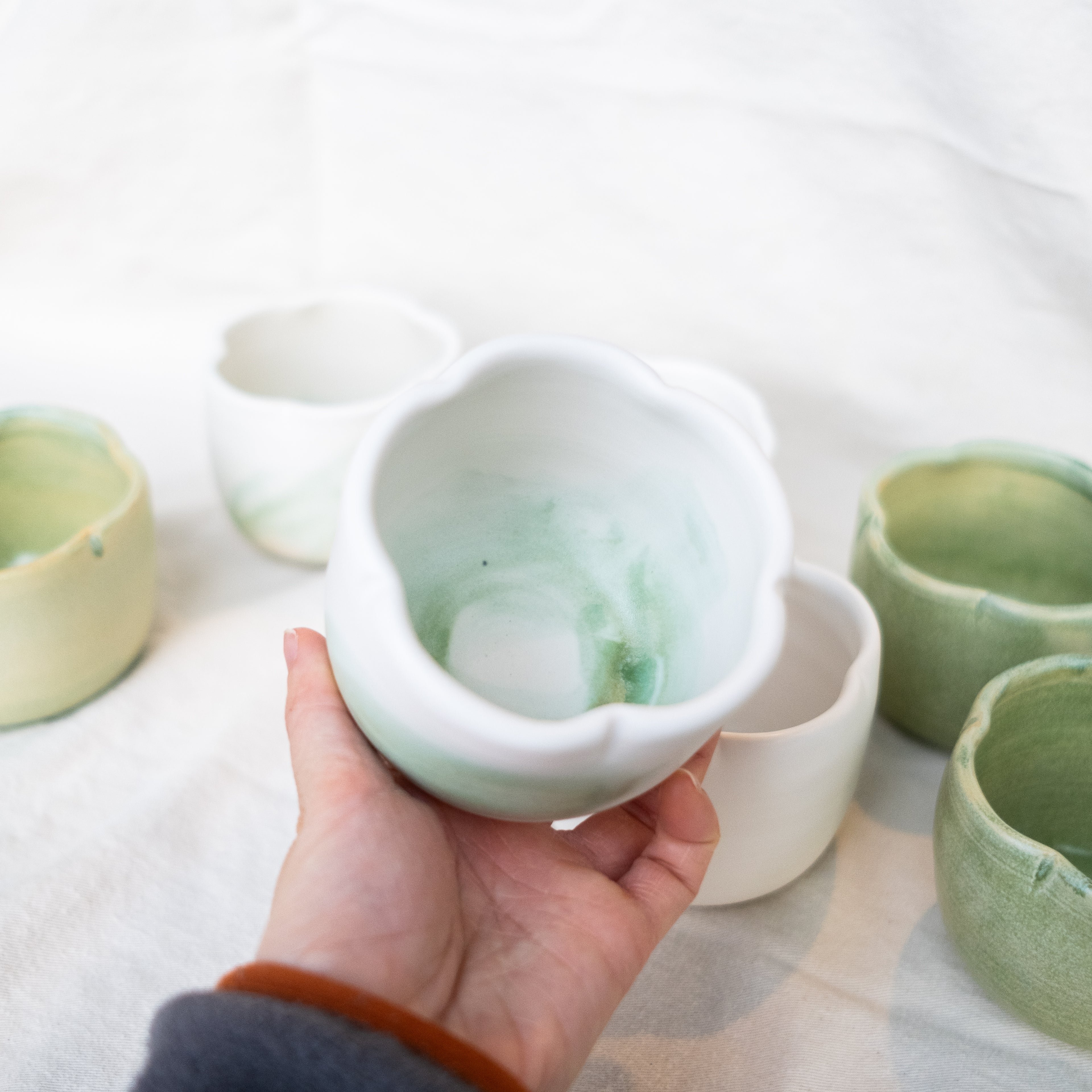brush strokes flow over a calm white surface, with variations in texture and saturation that resemble watercolor paintings. these pieces are one of a kind and will be be included in the coming seasons ♡