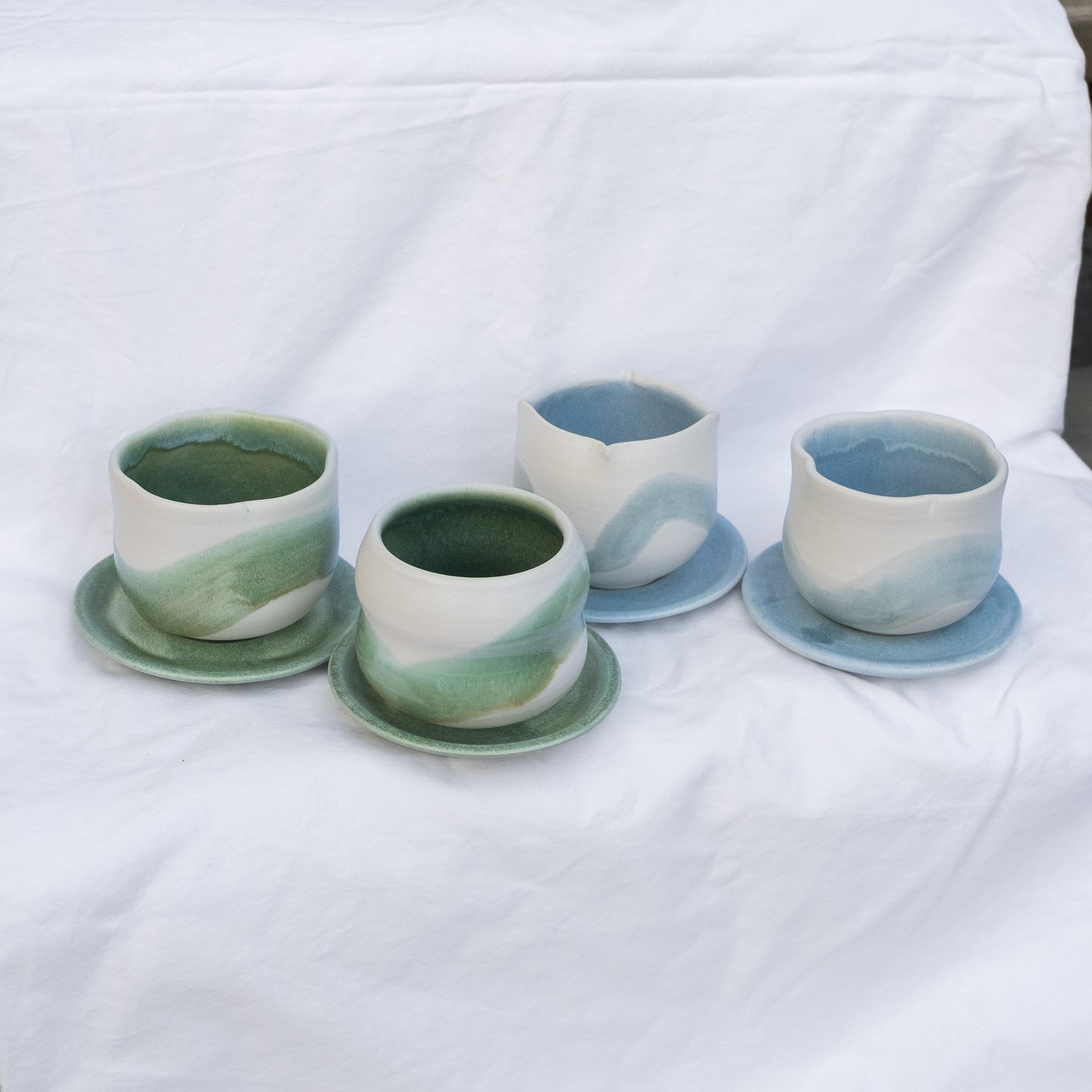 brush strokes flow over a calm white surface, with variations in texture and saturation that resemble watercolor paintings. these pieces are one of a kind and will be be included in the coming seasons ♡